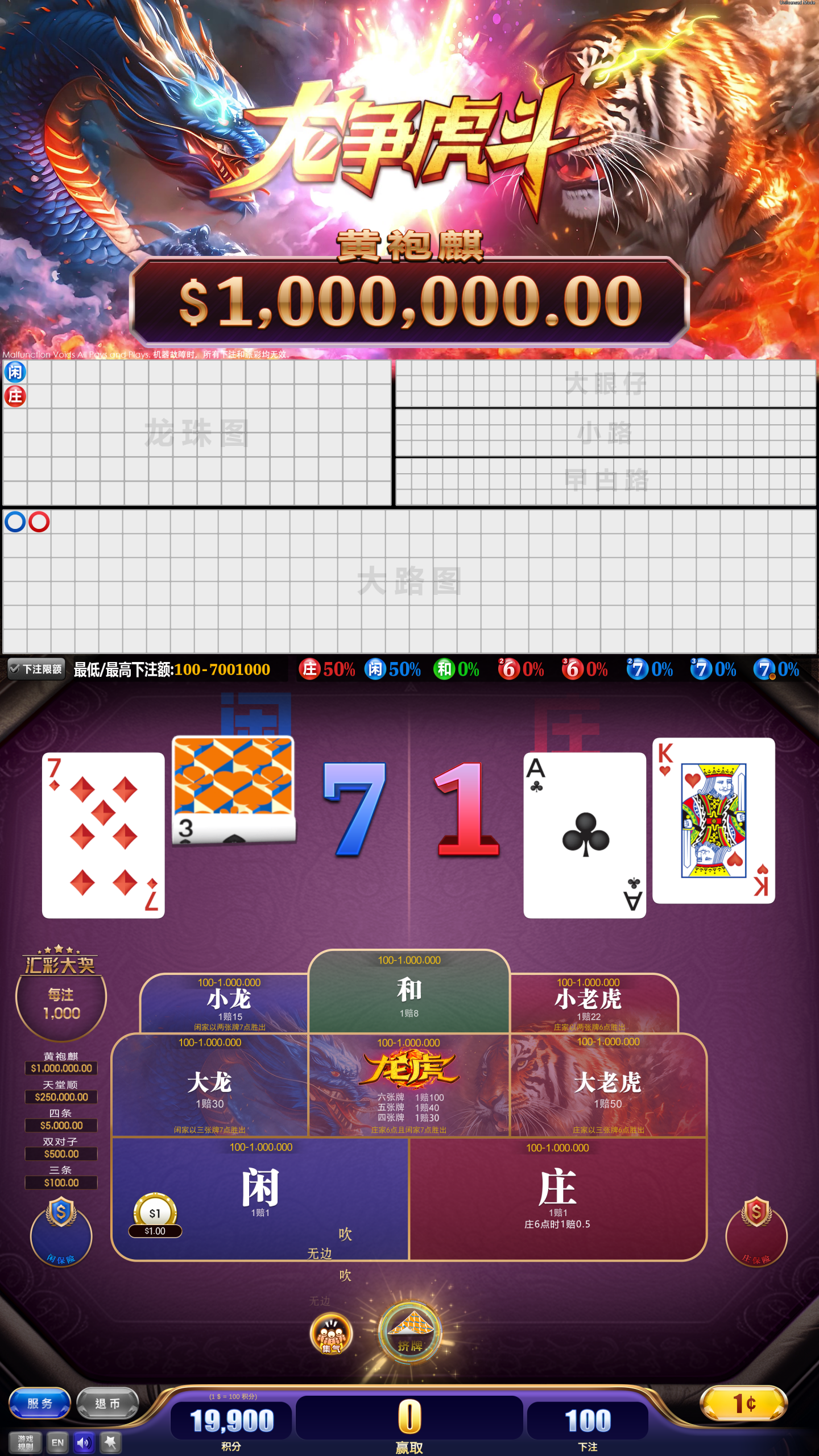 • 每次發牌會為玩家(龍)和莊家(虎)各發一張牌。